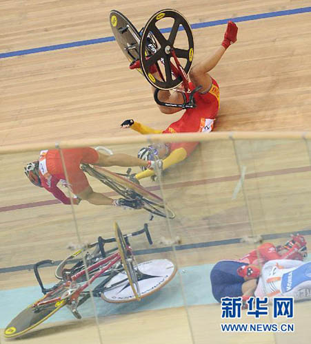 自行车赛场惊险连环相撞 七人翻车中国选手重伤