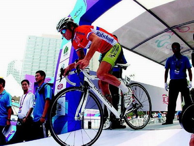 图为选手出发开赛 本报记者王东启摄 主题为“印迹中国”的2011年环中国国际公路自行车赛昨天在西安正式拉开了帷幕,来自五大洲的130位车手昨天在5.6公里赛道上悉数亮相,俄罗斯国家队的马尔科夫、美国 TT1 队的罗斯科夫和去年环中赛卫冕冠军德国人穆勒成为序幕赛前三名。 序幕赛上午10点正式开始,对所有车手来说序幕赛相当于环中赛正式开始前热身,赛前有2位车手因故退赛。130位车手根据赛前成绩和排名,以1分钟的间隔依次出发。顺利跑完序幕赛的所有车手都将得到相应奖金,前二十名奖金数额不同,前三名上领奖台。 第101个出发的俄罗斯国家队马尔科夫以6分58秒304,排在序幕赛第一;第65个出发的美国 TTI 队罗斯科夫,以6分59秒352排在第二位,去年冠军38岁的德国老将德克·穆勒最后一个出发,他以7分01秒375排第三。第7个出发的韩国国家队车手以7分04秒544的成绩排在第四位。 在序幕赛中,中国国家队的六个人跑得都很顺利,成绩最好的是马海军,他以7分14秒774排在所有车手第22位,另一位中国队主力纪习涛以7分27秒054排第55位。环中赛里年龄最大的香港著名车手黄金宝今天序幕赛跑了7分29秒587,排在第66位。 今年环中赛共22支车队参加,南非 MTN 队、中国合力兄弟队、荷兰国家队、俄罗斯国家队、香港卓比奥斯队都是新来的车队。 另外,昨天晚上组委会还在西安绿地笔克酒店举行了第二届环中赛开幕式,古城西安作为环中赛的出发城市,将至少在未来六年里承办该项比赛。本报记者王战荣实习生刘明璐 (责任编辑:王正坤)