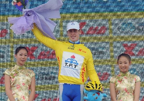 图文:环太湖自行车赛 鲍里斯(中)在领奖台上