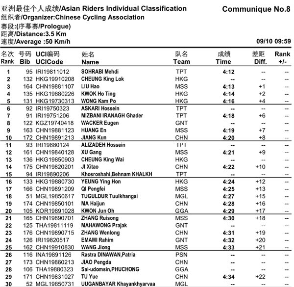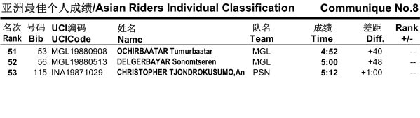首届环中赛—序幕赛 《亚洲最佳个人成绩》公告