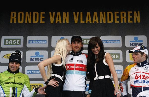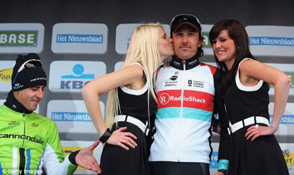自行车名将荒唐一幕 颁奖台掐美艳女郎臀部(图)