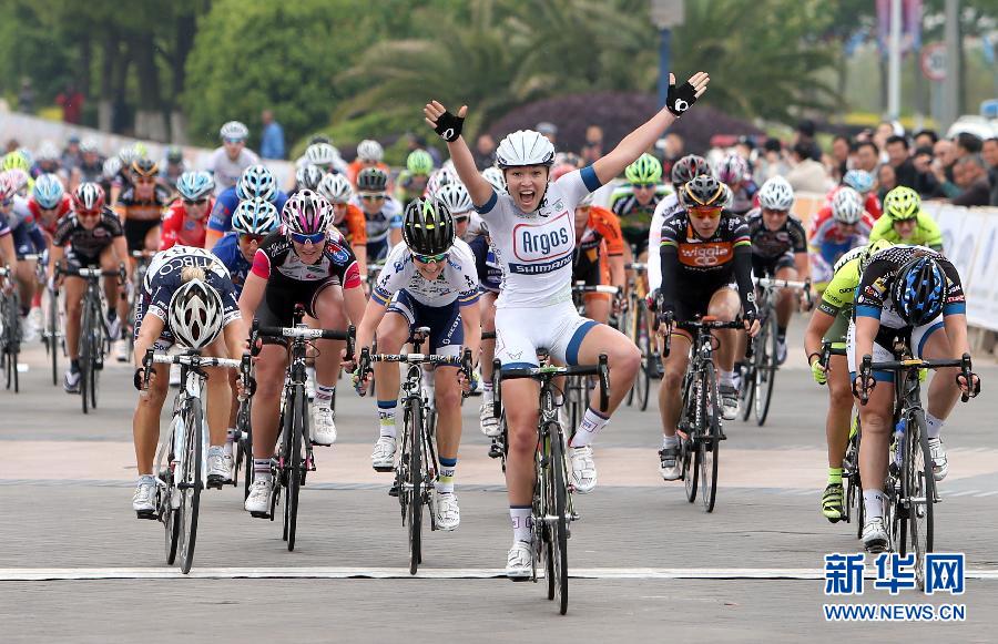 新华网上海5月9日电 5月8日,2013环崇明岛女子国际公路自行车赛在上海鸣枪开赛,共有18支队伍参赛。在首日的环崇北赛段全程73.4公里的比赛中,英国选手露西·加纳尔凭借最后冲刺的微弱优势,以1小时47分18秒的成绩夺得第一赛段冠军。