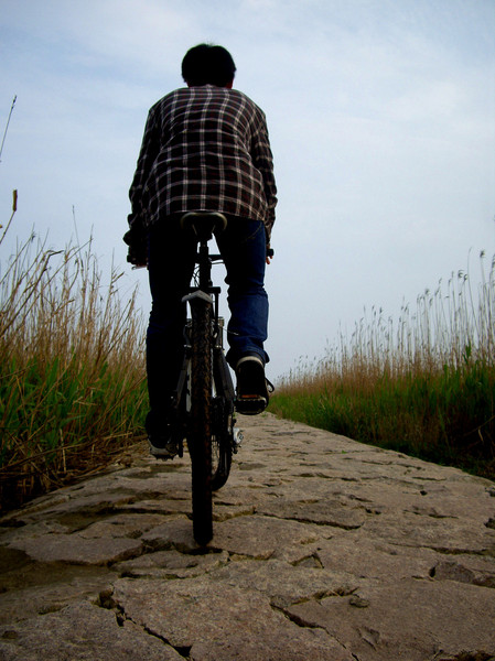自从去年独自上崇明岛流浪两天后,一直对东滩的那片芦苇念念不忘,暗暗告诉自己,等芦苇绿了,一定要骑车上来再看一遍!4月29日,与辛老大,轻车熟路,沿陈海公路走到陈家镇,再转个弯骑到瀛陈公路尽头,在那,终于看到满眼的绿! 那里,有高高堤坝,有宽阔的绿芦苇丛,还有延伸到东海的丁字坝。摆拍了几张,聊表内心的激动!