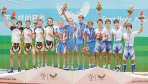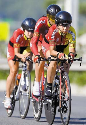 “非常喜欢这届大运会” 在昨日的女子组决赛中,共有6个国家和地区的队伍进入决赛,分别是立陶宛、韩国、德国、俄罗斯、日本和中华台北队。其中,立陶宛队三位选手艾格、奥斯瑞以及阿勒桑德拉发挥出色,共同协作以39分40秒79摘得金牌,韩国队获得银牌,德国队则收获了铜牌。 “这是我们第一次作为一个团队参加比赛,发挥得不错。我们对今天的结果相当满意。拿到金牌我们开心极了。”刚获得冠军的立陶宛队队员奥斯力涅·特列拜捷(TREBAITE-Ausrine)赛后兴奋地告诉记者,虽然天气很热,但是路况还不错,所以比赛进行得很顺利。“其实,我们开始并没有期望拿到金牌,只是在比赛中尽我们的全力而已。而在团队战术方面,我们与其他队伍有两分钟的间隔,因此也看不到她们的情况,我们只是自己骑自己的,在三名队员之间变换顺序,保持速度。”三位立陶宛姑娘都高兴地表示,“非常喜欢这届大运会。这里的人非常友好,其他队伍也很优秀。” 在颁奖台上,记者第二次看到了来自韩国的孙熙贞的身影,对于收获自己在本届大运会上第二枚奖牌,她表示公路团体计时赛和个人赛不同,不能太个人主义,需要更多的配合。所以每个人的速度都要相互跟得上。而对于比赛环境,“路况还好,但是天气还是太热,对身体不利。我刚开始骑就感觉累了。我们骑到终点全靠意志。不过,我会继续参加2012年伦敦奥运会的个人公路赛和山地自行车赛。” “回国将获总统接见” 相比起女子组,昨日的男子组比赛更受“煎熬”,因为比赛时间更接近中午,也意味着太阳势必比之前更猛烈。最后,俄罗斯队以55分10秒92获得金牌,德国和韩国分获银牌和铜牌。 在此次比赛中,俄罗斯队派出了4位选手,比赛开始后,他们都迅速进入状态,骑车速度非常快,虽然韩国队在后穷追不舍,表现得也十分出色,但最终还是以不到一分钟的差距惜败于德国队,仅获得季军。 在获得金牌后,俄罗斯队的士洛夫(SHILOV Sergey)在接受记者采访时表示,“我们从没想过自己能够超过比我们先出发的队伍,我们只是保持自己的车速,在比赛结束之前,我们都不知道成绩。我们也很珍惜这些奖牌,因为在自行车比赛中,每一枚奖牌都是通过辛苦和汗水换来的。”对于回国后将会如何庆祝时,他透露,届时将会在索契受到俄罗斯总统的接见。 在前几天公路个人赛中失利的德国队,此次一举获得了银牌,也受到了很多观众的关注。对此,德国队员格里斯查·亚诺斯克(JANORSCHKE-Grischa)高兴地表示,“这是我们4个人首次作为一个团队参加比赛,在公路个人赛结束后我们只有5天时间一起训练。而之前我们希望在个人公路赛有所收获,但当时在比赛高速进行时,发生了一次撞车,几名其他队的车手倒下了,比赛变得不好控制,为此也失去了获奖牌的良机,因此,我们决心在团体计时赛中夺牌。现在这个目标实现了,我们都非常高兴和骄傲。” 小知识 自行车公路团体计时赛一般是选择比较平坦的路面,途中设有转折点,每队由3至4名运动员组成,队与队之间的出发间隔为2至3分钟。队员要根据风向编队,采用匀速方式高速骑行,每人轮流在前领骑200米左右,然后下撤至队尾,并相互换位领骑,而每队必须有3名运动员到达终点,并以第三名运动员到达终点的成绩判定名次,如果成绩相等,则以该队第一名到达终点的成绩判定名次。 ()