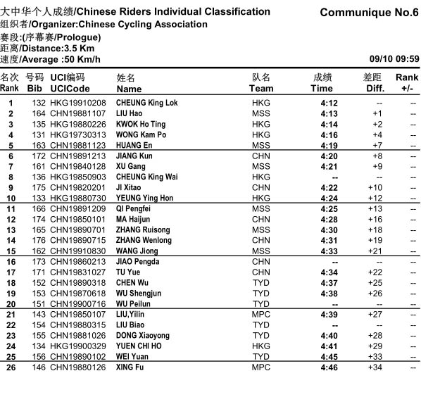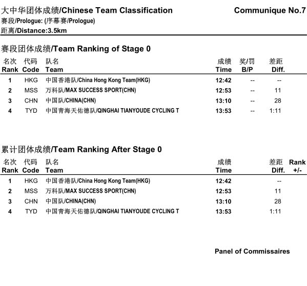 首届环中赛-序幕赛 《亚洲最佳/累计团体成绩》