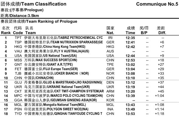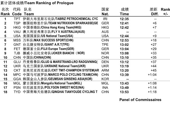 首届环中赛-序幕赛 《亚洲最佳/累计团体成绩》
