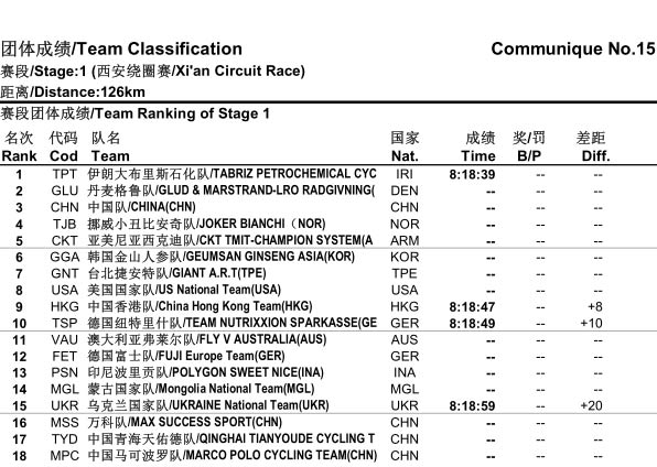 首届环中赛第一赛段《团体成绩/累计成绩》公告