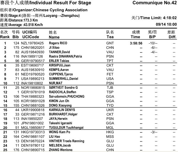 首届环中赛第4赛段 赛段个人/团体/积分成绩表