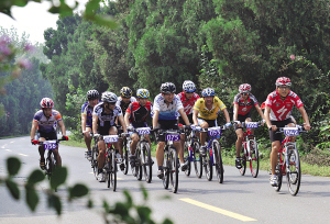 图文:洪泽湖古堰全国自行车赛举行 200人参赛