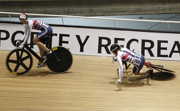 | 高清:场地车世锦赛英国女将摔倒 名将举车庆祝 |