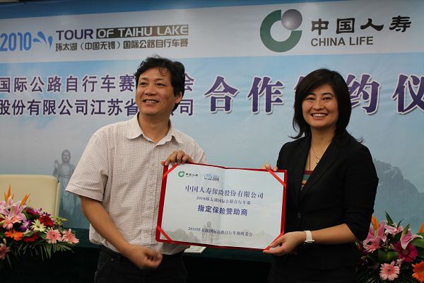 搜狐体育讯 9月21日,2010环太湖国际公路自行车赛组委会与中国人寿保险股份有限公司江苏省分公司品牌合作签约仪式在南京举行,双方本着诚信友好的原则,就赛事赞助的相关合作事宜全面达成一致。 据悉,首次在无锡举办的“2010环太湖国际公路自行车赛”为洲际2.2级,是目前国内较高基本的国际公路自行车赛。本次比赛以“出发,追逐绿色的梦”为主题,加大体育、文化、旅游结合力度,倡导绿色出行,低碳旅游,赋予赛事超越体育竞技的公益色彩。本次比赛还创新地将国际职业赛事与大众全民健身运动相结合,使人们在欣赏高水平的国际竞技同时,还能亲身参与,充分享受运动带来的快乐。 作为环太湖国际公路自行车赛唯一的保险合作企业,中国人寿保险股份有限公司江苏省分公司为本次大赛提供总计价值约7亿元人民币的赞助。其中,为专业运动员办理每人价值100万人民币的保险业务,为所有业余运动员和工作人员办理50万人民币的保险业务。除此之外,还提供20辆服务保障专用车,3辆救护车等,专业化的保险保障必将为此次赛事的顺利开展提供有力支持。 此次签约标志着中国人寿江苏省分公司与2010环太湖国际公路自行车赛组委会全面建立合作关系。江苏省分公司在此次赛事中尽一份力量是履行企业使命、担当社会责任的行动体现,今后还将为体育事业的进一步发展保驾护航。此次合作对于促进江苏省的全民健身运动以及提升中国人寿品牌形象具有重要的战略意义。相信随着双方合作的深化,今后必将进一步拓宽合作领域,为全方位、深层次的合作奠定坚实的基础。