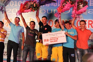毫无悬念 伊格林斯基笑到最后 第五届环岛赛昨日圆满落幕,俄罗斯国家队获得总团体第一 记者 刘伟/文 王卫国/图 本报讯 昨日下午3时20分许,随着107位车手如疾风般穿过终点拱门,“海南高速·瑞海杯”2010环海南岛国际公路自行车赛顺利在三亚市结束了最后一个赛段的争夺。随着昨晚闭幕式暨欢送晚宴的举行,第五届环岛赛昨日在三亚市圆满落幕。正如不少车迷所预料的,来自阿斯塔纳职业队的3号选手维林缇·伊格林斯基成功捍卫黄衫,他以总成绩26小时49分23秒领先第二名17秒的成绩成为本届环岛赛的最大赢家。 昨日上午,最后赛段起点东方市一片晴朗,这让组委会感到十分放心。上午10时许,随着裁判的一声枪响,113名参加最后赛段比赛的车手全部发车。该赛段全程222.5公里,为整个环岛赛最长的路程。赛事经过东方、乐东、三亚。比赛分设三个冲刺点和两个爬坡点。 昨日下午3时20分许,经过5个多小时的长途跋涉,比赛终于回到三亚市,107名车手顺利完成了比赛。 范哈穆尔“雪耻” 昨日斩获最后一个赛段冠军 记者 刘伟 本报讯 在第八赛段中,来自荷兰禧玛诺洲际职业队21号选手肯尼·范哈穆尔因爆胎后的违规行为而被取消第八赛段第一名的成绩。昨日,肯尼·范哈穆尔再度发威,夺得本届环岛赛最后一个赛段冠军,一雪前耻。记者在终点看到,肯尼·范哈穆尔在冲过终点时显得十分兴奋,他高高竖起右手五个手指,左手用手指指着自己的胸脯,意思是告诉观众他是五个赛段第一名(实际上是四个赛段第一,第八赛段违规被取消该赛段第一)。 来自印尼波立贡洲际队145号选手谢尔盖·库登索夫和西班牙塞维托职业队的15号选手恩里克·马他紧跟其后,获得该赛段亚、季军。此外,来自西班牙的选手阿特亚加·杜兰将“圆点衫”穿到了最后,“爬山王”殊荣实至名归。 在个人总成绩榜单上,来自阿斯塔纳职业队的3号选手维林缇·伊格林斯基成功捍卫黄衫,他以总成绩26小时49分23秒领先第二名17秒的成绩成为本届环岛赛的最大赢家。 伊格林斯基“独大” 一人在本届比赛中独得三衫 记者 刘伟 本报讯 昨晚,第五届环岛赛在美丽的三亚市三亚湾海边举行了闭幕式,各路获奖车手一一登场亮相。在见面会上,本届环岛赛个人总冠军、来自阿斯塔纳职业队的伊格林斯基笑容满面,他表示感谢队友的帮助让他成功夺得黄衫。“阿斯塔纳赢了,阿斯塔纳是最棒的。”伊格林斯基兴奋地说。 据了解,在本届环岛赛上,伊格林斯基无疑是最大的赢家。纵观历届环岛赛,像伊格林斯基这样优秀的成绩也可谓屈指可数。据悉,伊格林斯基不但获得了象征个人总成绩第一名的黄衫,他还继续保有了象征亚洲最佳选手的蓝衫以及象征冲刺积分第一名的绿衫,一人在本届比赛中独得三衫,这在历届环岛赛上尚属首次。 记者从奖金分配表中看到,以获得这三衫来计算,伊格林斯基个人获得的总奖金就将高达3.25万美元(其中个人总冠军奖金2.45万美元、冲刺积分第一奖金4000美元,亚洲最佳选手奖金4000美元)。此外,加上阿斯塔纳职业队获得的亚洲团体第一名(俄罗斯国家队以80小时29分45秒获得总团体第一,阿斯塔纳职业队以80小时29分49秒获得总团体第二名)等其他成绩,加上阿斯塔纳职业队的其他车手表现亦十分出色,阿斯塔纳职业队可谓是本届环岛赛最大赢家,赢得的奖金也是最多的。“阿斯塔纳职业队能获得如此优异的成绩,也不失为目前世界排名第一的自行车队。他们既获得了名誉,也赢得了奖金,还让队员通过环岛赛有了不错的调整。”组委会相关负责人在闭幕式上说。 伊格林斯基称,在海南参加环岛赛的近10天来,虽然受到了暴雨天气影响而取消了一个赛段和砍掉了半个赛段,但他总体感觉还是很好的。“我很喜欢海南,喜欢这里的风景和人,环岛赛的接待很好,比赛组织也很好,希望以后能每年来中国海南参加环岛赛。”伊格林斯基开心地表示,此外他还不忘祝愿海南人民能顺利抗击暴雨灾害:“希望暴雨停止,洪水能早点退去。” 花 絮 美女甘当“绿叶” 记者 刘伟王卫国 本报讯 在今年的环岛赛中,一群身穿迷你短裙、活泼可爱的自行车拉拉队宝贝们一直跟随着比赛到每个市县,她们用优美的身姿和激情的舞蹈,为环岛赛默默助兴。据悉,这就是我省三大体育赛事宝贝。这群美丽的姑娘们甘当环岛赛的绿叶。 评价 组委会的高效 可媲美欧洲赛事 记者 刘伟 本报讯 本届大赛裁判组总裁判长、来自德国的亚历山大·多尼克对本届环岛赛的组织工作给予高度评价。多尼克认为,组委会的组织、安保工作、赛前准备、赛事操作都达到了很高水平,可以和欧洲一些高水平赛事组委会相媲美。此外,组委会应对灾害天气的相应速度也很快、高效率,让他感到很意外。此外,多尼克说环岛赛的赛道全线封闭,保证了选手安全,这在国外的大赛上是不太可能做到的。他最后表示,虽然下届环岛赛已经不能担任总裁判长了,但他希望最起码作为一名普通游客来到海南观看比赛。多尼克说,比赛结束后他将着手开始写环岛赛报告,他会仔细而全面地对环岛赛进行总结,并向国际自盟提交。 (责任编辑:君木) |